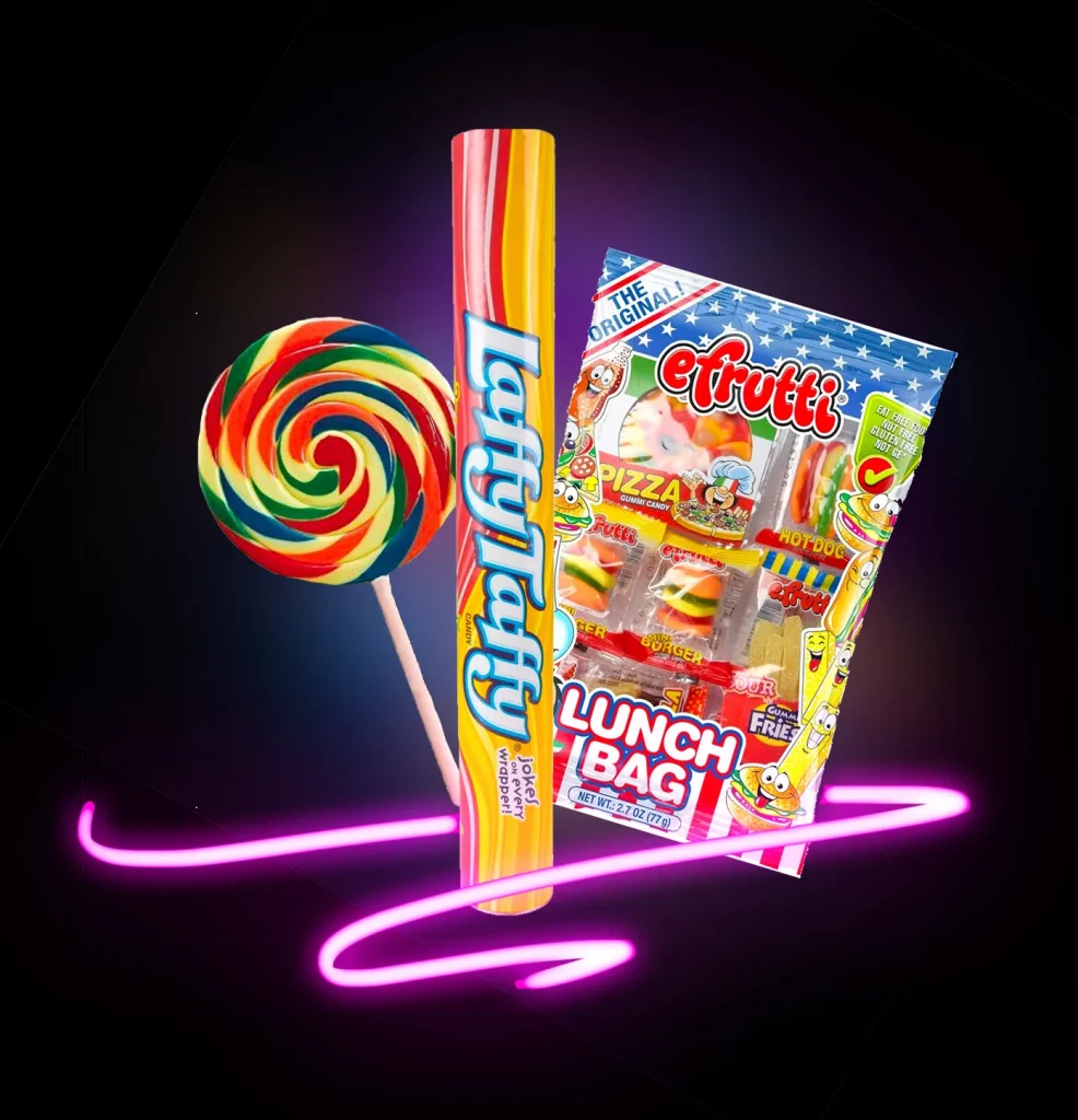 Candy-galore! We have a huge selection of classic candies, from Nerds and Laffy Taffy to classic lollipops and Airheads, and everything in between.